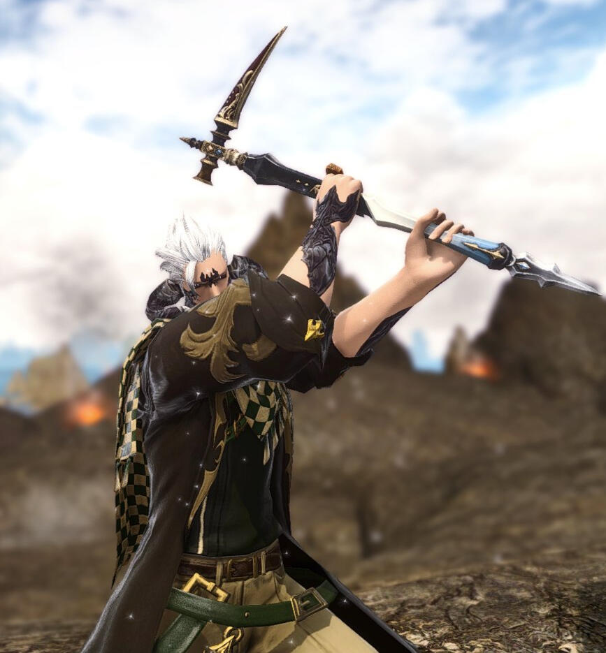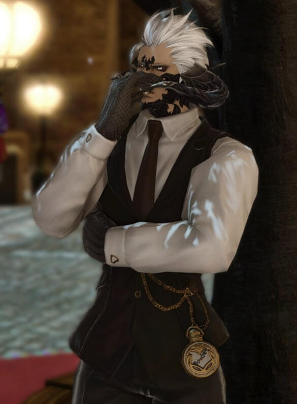 "He served in both the Ala Mhigan and Bozjan fronts against Garlemald.""I heard his siblings were killed in an accident caused by him!""Heard his personality shifts when he's in a tough fight.""One of his favorite thing to mine for is fire aether crystals.""I heard he took a gunblade from a Garlean's corpse and uses it with his fighting techniques."*
